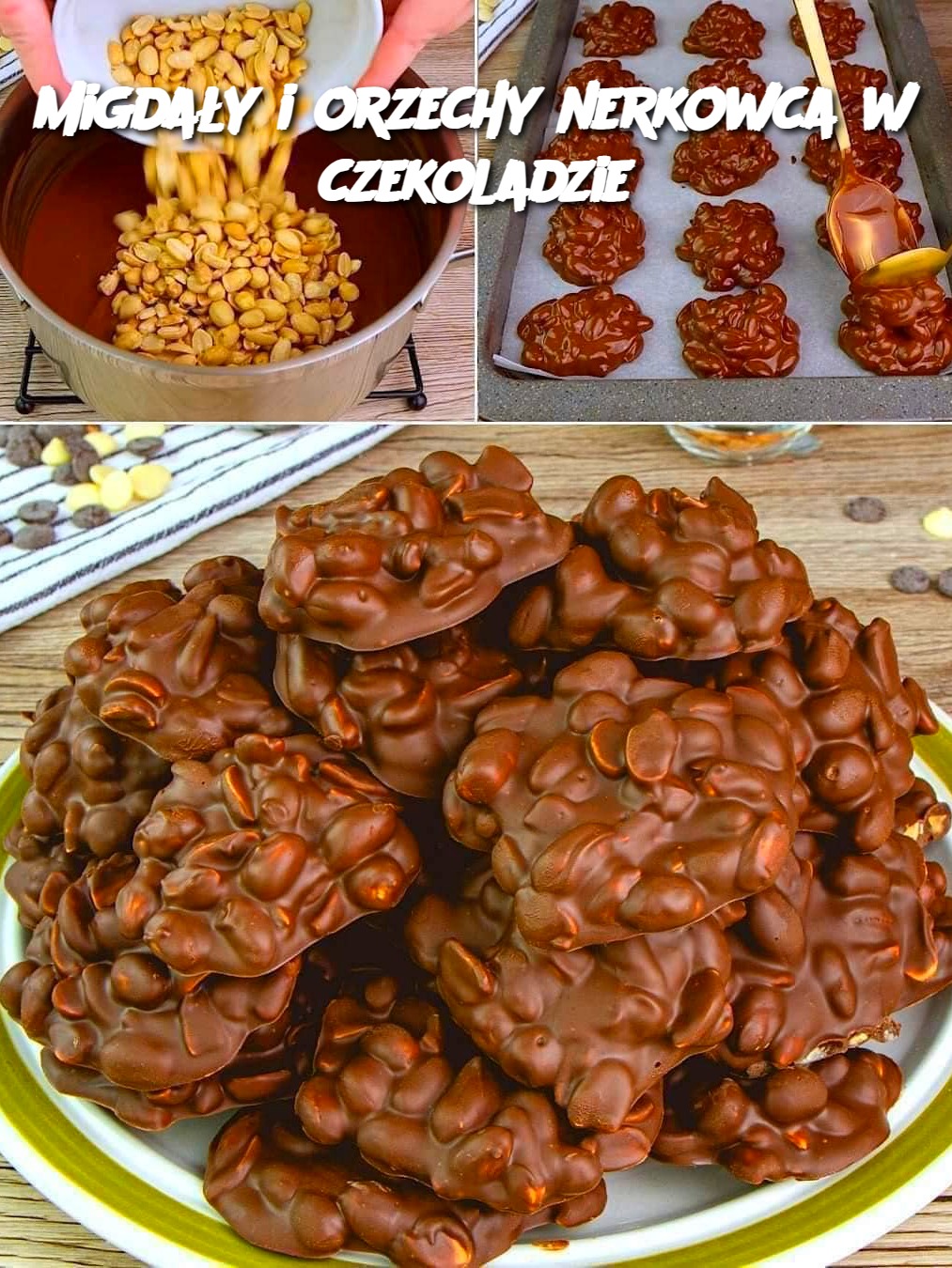 - Dodaj migdały i orzechy nerkowca do rozpuszczonej czekolady i dokładnie wymieszaj, aby każdy orzech był równomiernie pokryty czekoladą.’